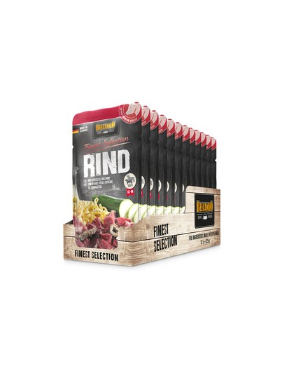 Bœuf : viande, cœur, poumon, foie, panse (63 %); Bouillon de viande de bœuf (28 %); Spätzle (4 %); Courgettes (4 %); Huile de carthame (0,5 %); Carbonate de calcium (0,5 %).
