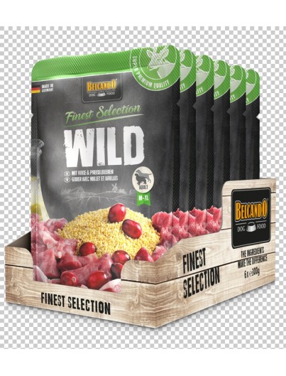 Gibier : viande, cœur, foie, poumon (34 %); Agneau : viande, foie, panse, poumon, cœur (31 %); Bouillon de viande de gibier, d’agneau (28 %); Millet (4 %); Airelles (2 %); Huile de carthame (0,5 %); Substances minérales (0,5 %).