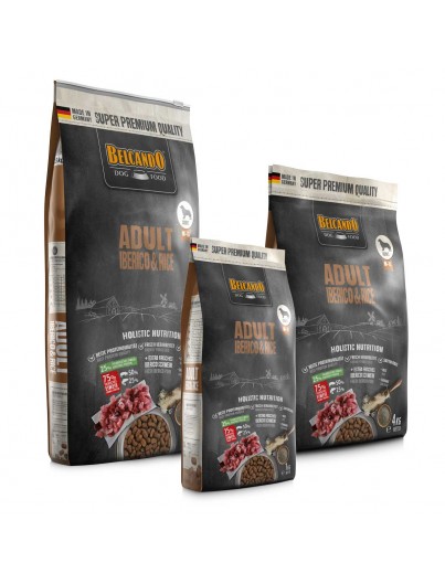 porc ibérique frais, foie, rate, rognons (30 %); riz (29 %); protéine de porc ibérique, séchée (12,5 %); farine de poissons d’océan (9 %); farine d’avoine fourragère; farine de pois; levure de bière, séchée; gousses de caroube, séchées; farine de fève (Vicia faba); expeller de pépins de raisin; graine de chia (1,5 %); huile de saumon (1,5 %); levures, hydrolysées; graine de lin; huile de carthame (1 %); phosphate bicalcique; chlorure de sodium; chlorure de potassium; herbes, séchées (total: 0,2 %; feuilles d’ortie, racines de gentiane, petite centaurée, camomille, fenouil, cumin, herbe de gui, herbe de millefeuille, feuilles de mûres); yucca schidigera.